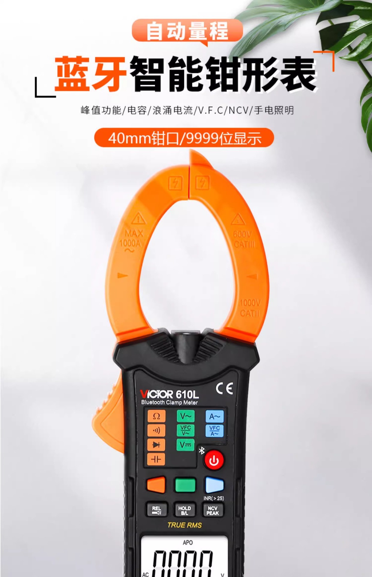 VICTOR 610L钳形表 9999位显示,带蓝牙连接